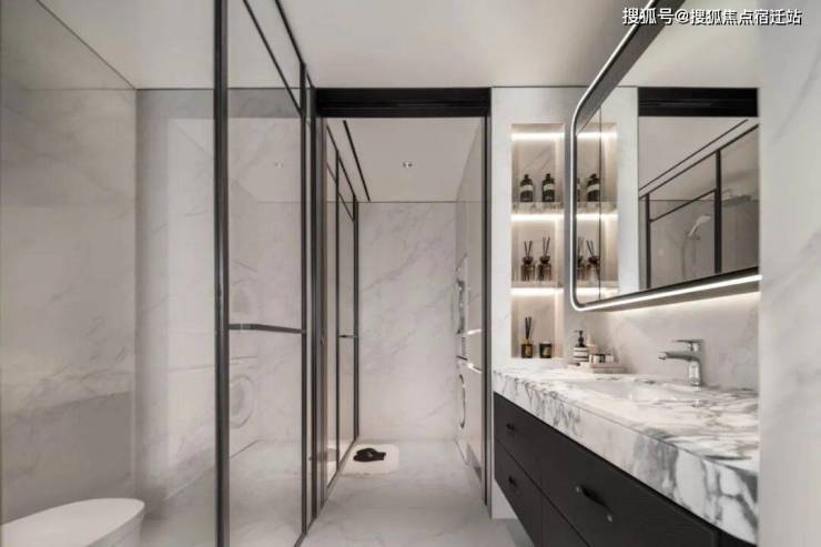 公卫打造独特的四分离系统,实现独立洗漱台、卫生间、淋浴间、洗衣区互不打扰,将酒店化体验引入住宅。