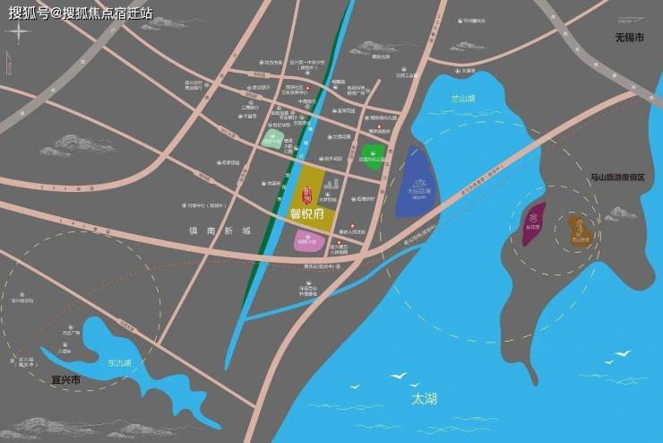 2.宜马快速通道的出入口也在附近,双向6车道设计穿越竺山湖到达马山镇与苏锡常南部高速无缝对接可走太湖隧道到达无锡太湖新城。