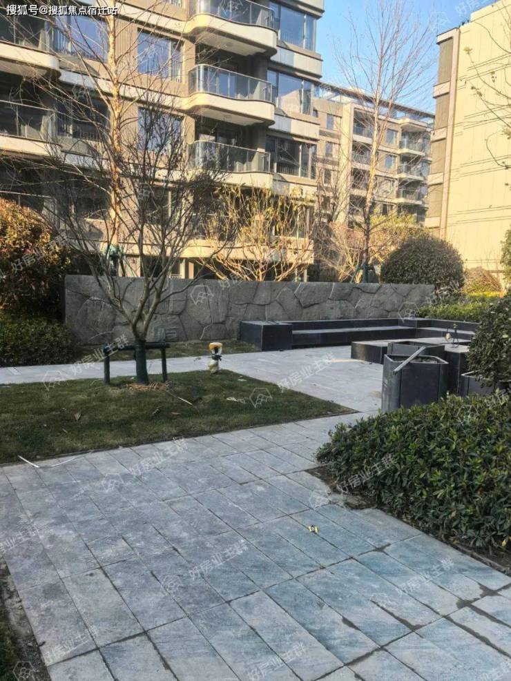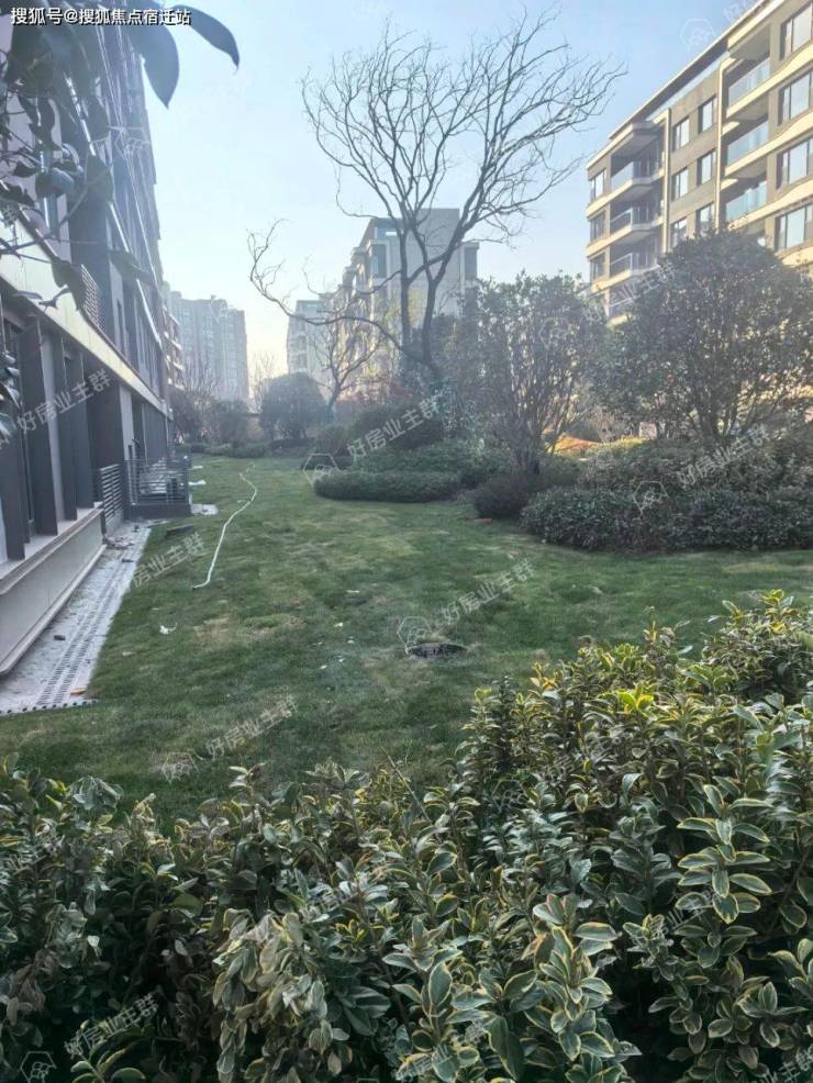 园区内乔、灌木及草皮已经完成移植,人行路面已经完成青石板砖铺设,园林造景也已完整呈现,目前园林内草皮状态不佳,出现枯黄露土情况。