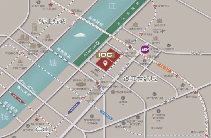 【交通】近邻2号线钱江世纪城站、6号线博览中心站、7号线奥体中心站;庆春隧道、博奥隧道、望江隧道畅联无阻;复兴大桥、西兴大桥、彭埠大桥连通无界。