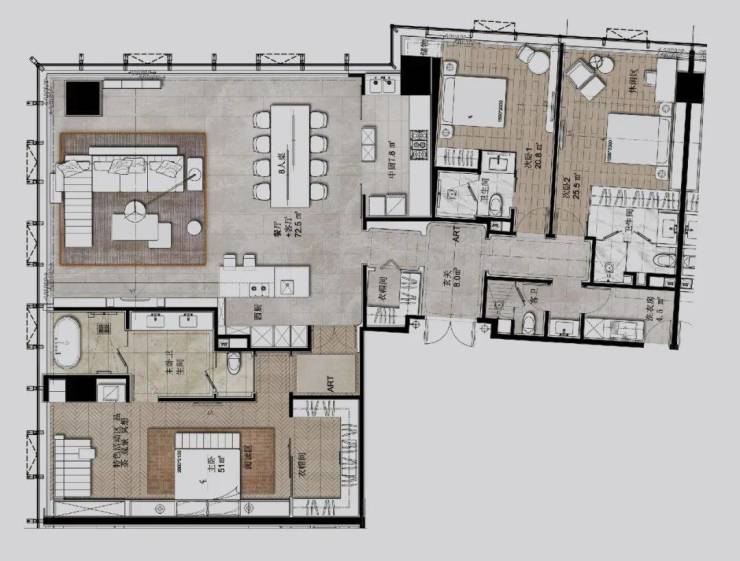 大平层作不仅拥有单纯的居住属性,更是城市封面、身份认同、自我实现的标志性产品。为各界高净值人群提供精神与空间的首席话语权。