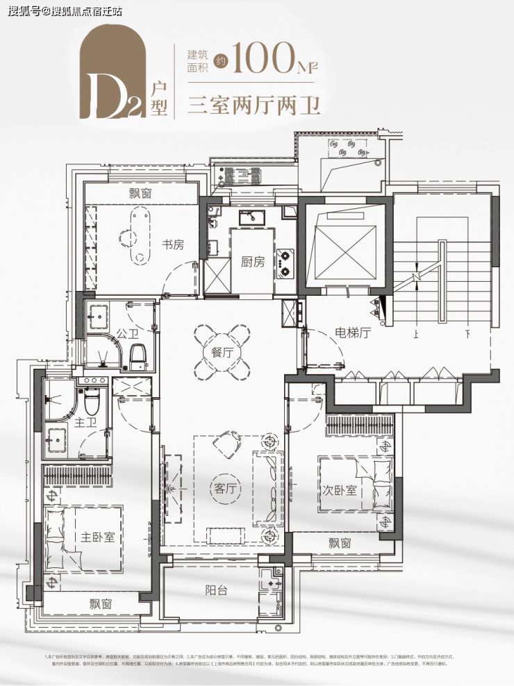 建面约100㎡3房2厅2卫户型图阶段性过程稿