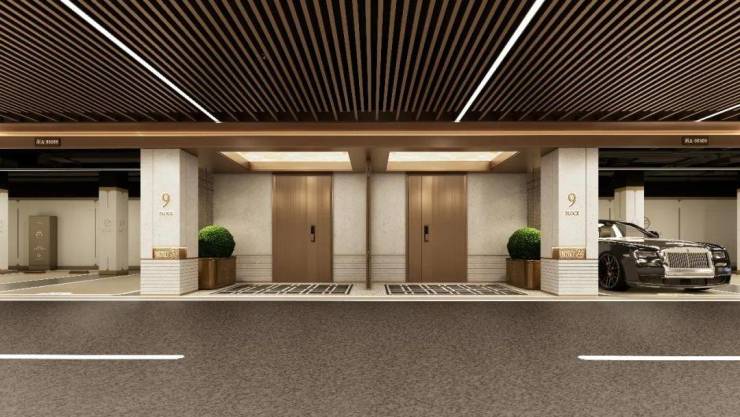 作为车行归家的第一触点,地库是品位的不经意流露。雲润宸庐,以金色铝板吊顶搭配温润青玉石材,为业主高定兼具仪式感、精致感、奢华感的华贵泊车场域。