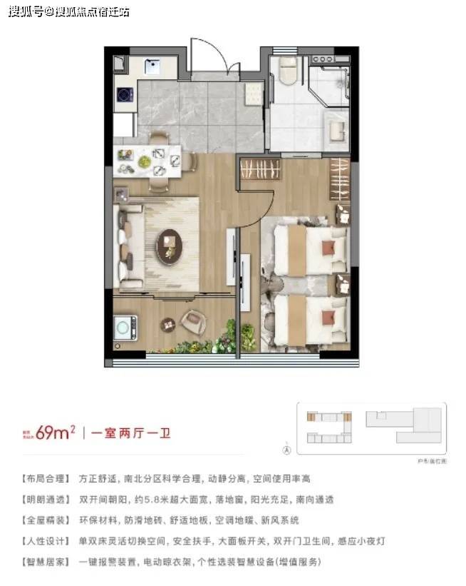 •产权居家养老公寓,医康养融合保障,户型全朝南、大面落地窗设计,恒温恒氧空间,室内紧急报警装置,突发情况紧急救治。