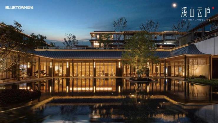 蓝城·溪山云庐在建筑设计上,集萃大师建筑理念,考量山水地势与自然肌理的细微变化,将建筑融隐于山水,让人、建筑、自然亲切交语,造极美如宋画的心栖之境。