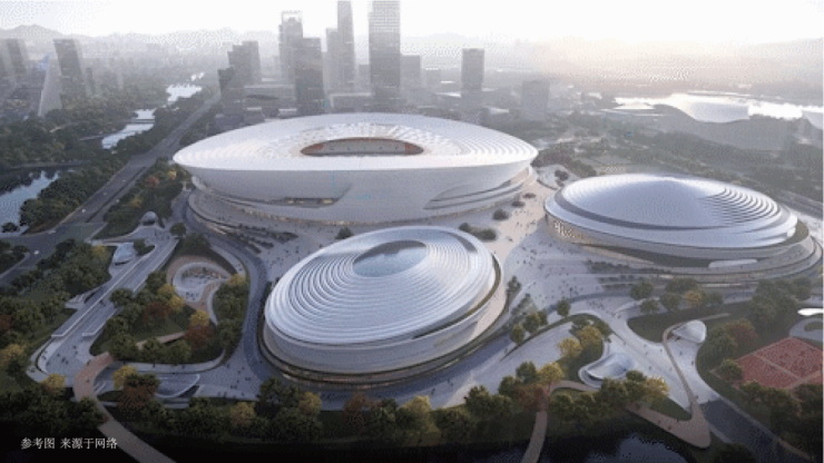 48万方国际体育中心,世界级大师扎哈-哈迪德建筑事务所操刀,2023年9月已动工。