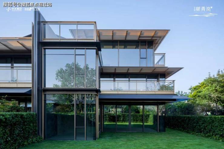 樾青岚的户型,每个都有大面宽,和整块的大面落地玻璃,这是一个洒满阳光的合院。因此樾青岚整个立面用了大面灰蓝的玻璃,不仅有清亮的通透感,更保护主人生活的私密性。在落地窗上,镶上金色铝线条“油画框”,再辅以金属引檐,金色的露台栏杆底座,金色的格栅院门,完成“金”之描摹,犹如一幅巨幕画框,呈映天光云影。