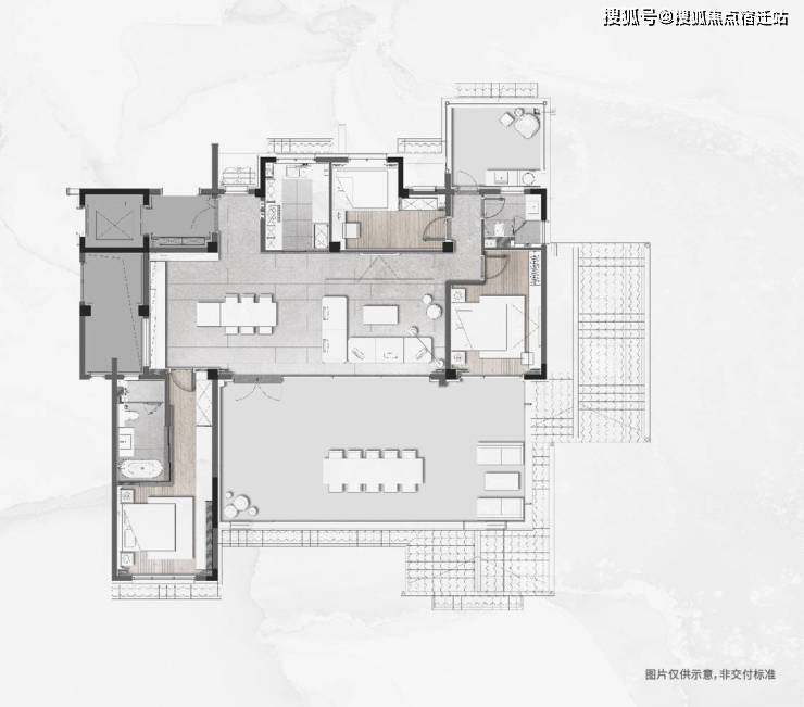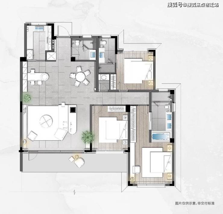 ·进深——超规格开间尺度进深有余裕,卧室双套间设计动静分离