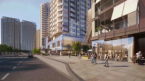 根据意向效果图,雅宾利4期预计为开放式社区设计,采用空中花园将社区立体连接在一起:项目将会采用地面抬高3层的设计,其中3层以下为商业底盘。