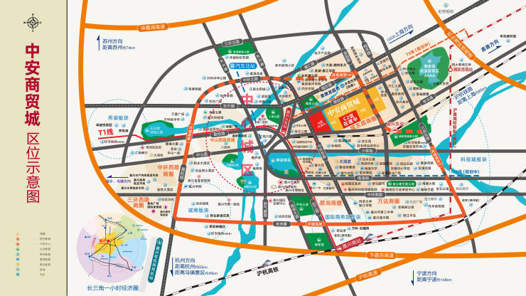 距离市中心仅2.1公里的路程,东面紧邻S07省道,华洋码头和铁水港;货运东站约900米;项目距离高速路口30分钟、嘉兴机场即将投入使用,三环东路-环城路高架以及快速路在建中,优越的交通优势为市场内部商户提供海陆空全方位立体交通网络枢纽。
