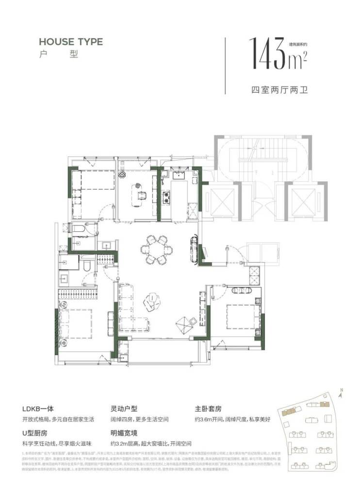 建面约 143 平(4室/2厅/2 卫)