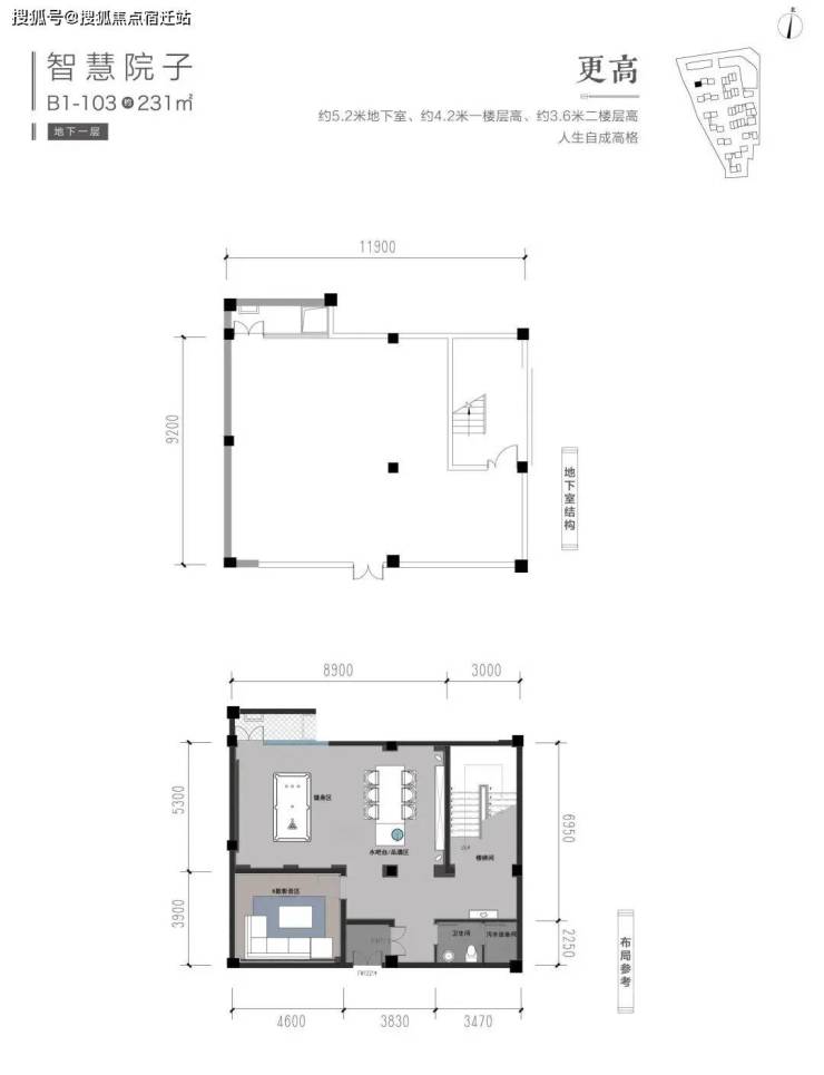 超5.2米地下室层高,约4.2米首层层高,约3.6米二层层高,最大600方超大前后花园