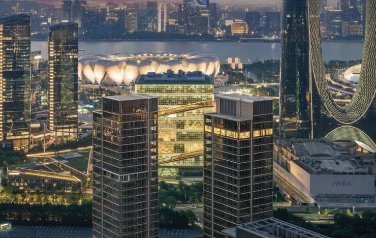 星河CLUB里泳池健身瑜伽一应俱全,下沉庭院和景观错落有致,是典型的滨江风格,走在园区里,望着金色的立面与杭州之门交相辉映。