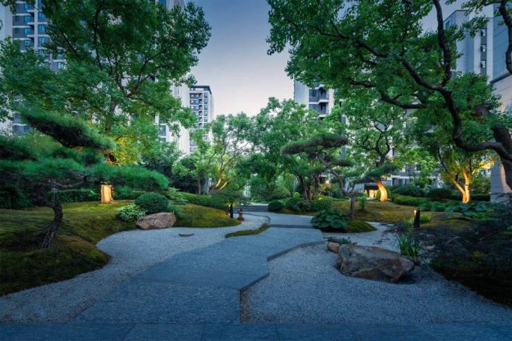 携手上海罗朗景观打造的"浮游秘境"主题园林实景呈现,2.0低密生态绿境,原生乌桕、造型黑松等数百棵植被构成四季景观,诗情画意尽情铺展,归家犹如度假旅行。