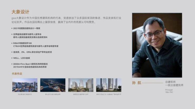 项目由中国土木工程“詹天佑奖”、中国建筑最高奖“鲁班奖”获得者GOA大象建筑设计,与世界景观建筑大奖、ELA国际景观大奖等国际奖项获得者安道景观设计联袂操刀,通过“超高层城市地标+多业态里坊制商业街区+立体生态未来空间”,结合城市人文风土、商贸特色等,加以在地化演绎,打造为城市新地标风景。