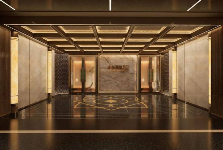 五星级酒店标准地下车库及入户大堂;汽车坡道及入户大堂等公区采用铝板星光顶高档装修,地下室地面为水磨石、大理石;汽车过道彩晶磨砂石地坪;杭州顶级楼盘配置