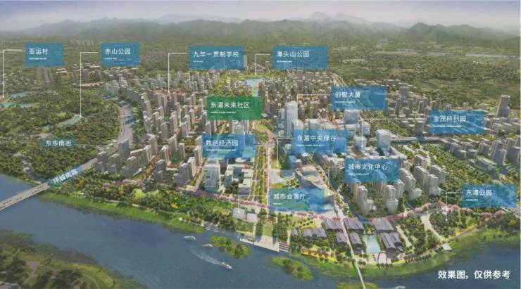 •🔔东湄未来社区:涵盖商住混合用地和居住用地,是第二批省级未来社区试点,以 “一心三化九场景”为顶层设计,打造五分钟步行生活圈。