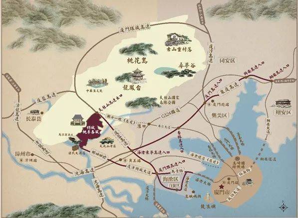 桃李春风小镇位于厦、漳、泉“海西”经济区的核心位置,距厦门岛内约40公里,漳州市区约19公里,长泰县城约8公里,交通便捷,且在未来两年内,待“海沧隧道”和“联十一线”相继开通后将进一步缩短与厦门的距离,加速提升区域优势。