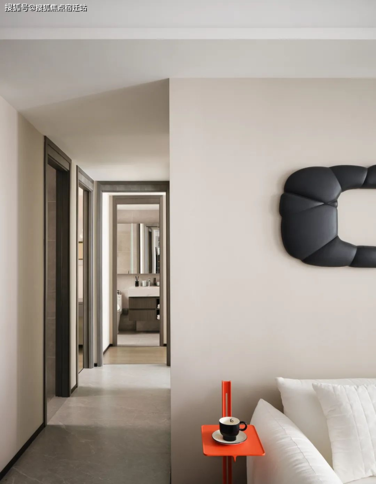 米白色的壁纸,结合上方吊顶,整体多了一分温暖高贵;结合卧室地板,多了一份清爽温馨;结合客厅地砖,多了一分优雅大气。