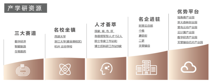 紧邻城西科创大走廊东首一一紫金港科技城,西连未来科技城、云城,东融杭州主城,涵盖西湖科技园、云谷两大核心区块,与浙江大学、西湖大学共同组成了“两校两区”的产学研一体化集聚区,秉持“十四五”发展规划,致力打造全区产业发展新高地、全省科技创新策源地、全国创新一流科学城。