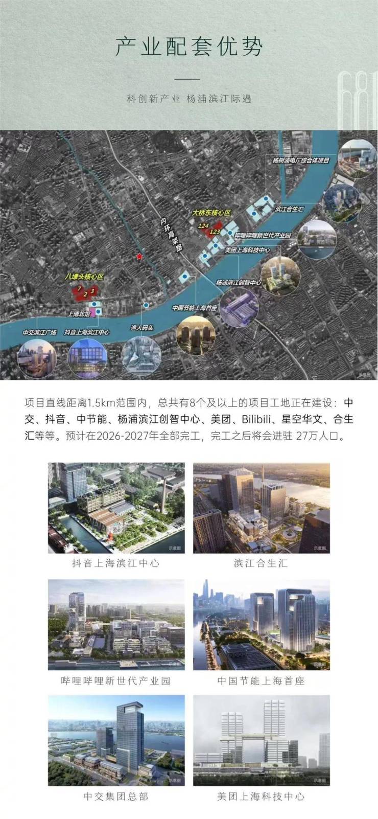 汇等等。预计在2026-2027年全部完工,完工之后将会进驻27万人口。