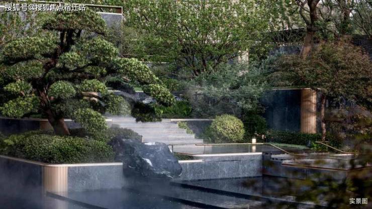 沿着山石视线一路向上,会发现在「山顶」还有一棵姿态挺拔的罗汉松,非常有辨识度。不是只有高楼大厦才是地标,樾青岚的入户同样是很难被模仿的独特主入口。