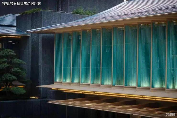 整个入口最显眼的,当属一整排风雅的青绿屏风,就装饰在入口会所的二楼,用了代表宋韵的「天青色」——就像那句脍炙人口的「雨过天青云破处」。