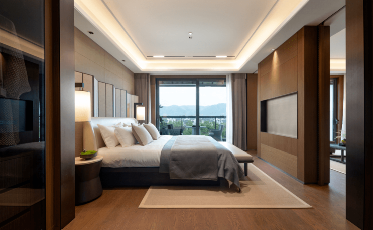 坐酌泠泠水,看煎瑟瑟尘,袅袅山湖间,静谧和诗意缓缓流淌。居住于此,隔绝城市的喧嚣和浮躁,每次呼吸都充满自然的气息,每寸空间都饱含无界自然之美。