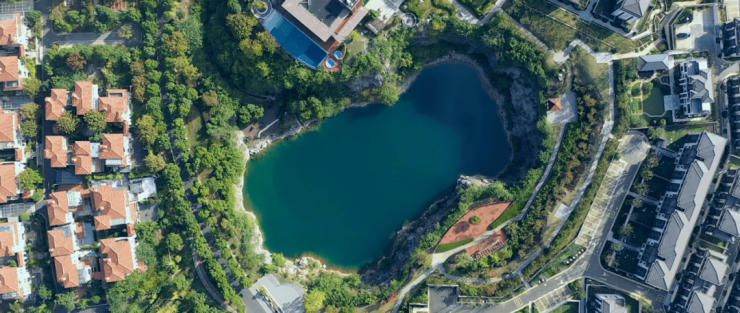 更不用说,长在度假区里的住宅这一属性,中交更用其非凡手笔,打造全叠墅产品,映月阁占地近12000㎡,其中社区景观超9000㎡,绿化率近70%,于山湖之上再造自然的手法,此等画面让人陶醉。