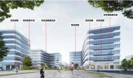 1. 高层集中在东侧主展示界面,主入口围合成大尺度主入口广场(60m*80m),开阔大气。