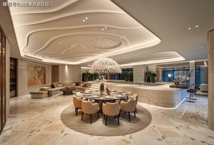 推开定制的进口双开门,迎接业主的是源自艺术走廊灵感的超50㎡大前厅,跃升归来的尊崇仪式感,亦可作为家族收藏、主人喜好展示之地,呈现更多可能。除160㎡泳池私宴区,EIC另构筑超140㎡超大客餐厅,270°尽揽奥体繁华与钱塘风华。