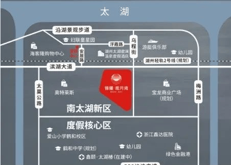 【生活配套】:奥特莱斯、浙江鑫达医院(三甲)、海客隆购物中心、爱山小学鹤和校区、鹤和中学、长田漾湿地公园、太湖湿地公园、月亮广场、7星级月亮酒店、渔人码头、游乐园“龙之梦”、宝龙商业广场(规划)。