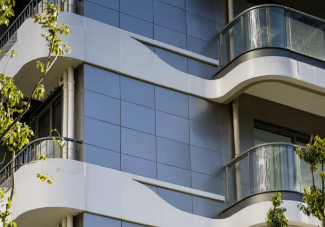 建筑拐角处采用定制弧面铝板—— 这种设计需要工人现场反复微调才能成型,很多开发商嫌麻烦、怕花钱而选择放弃,但中国铁建却坚持这样做,只为让建筑线条更加流畅自然,从任何角度看都像一件精美的“艺术品”。