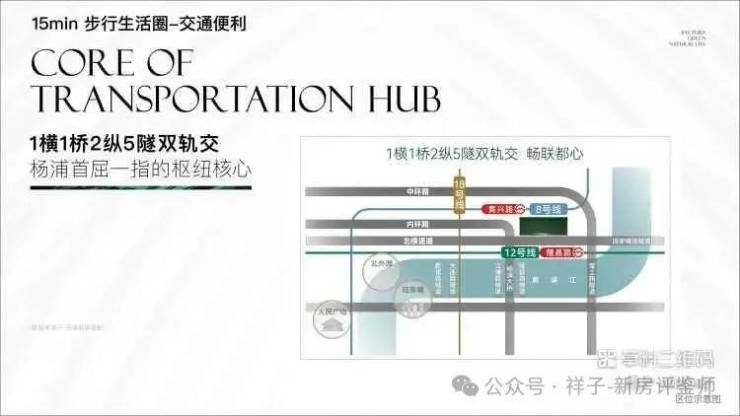 ◎一纵五隧: 800米内环 ,标定塔尖主场。距离内环线仅800米 ,此外还有五大隧道连接浦东(周家嘴路隧道、军工路隧道、江浦路隧道、大连路隧道 、在建的隆昌路隧道)