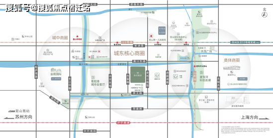 约800m(直线距离)连接苏州轨道交通11号线鱼池泾站,快速达成沪、苏、昆三城的城际切换;约1000m(直线距离)可达中环东线,实现城际交通衔接。沪宁高速等多通道接驳上海,畅行长三角,为出行按下快捷键。