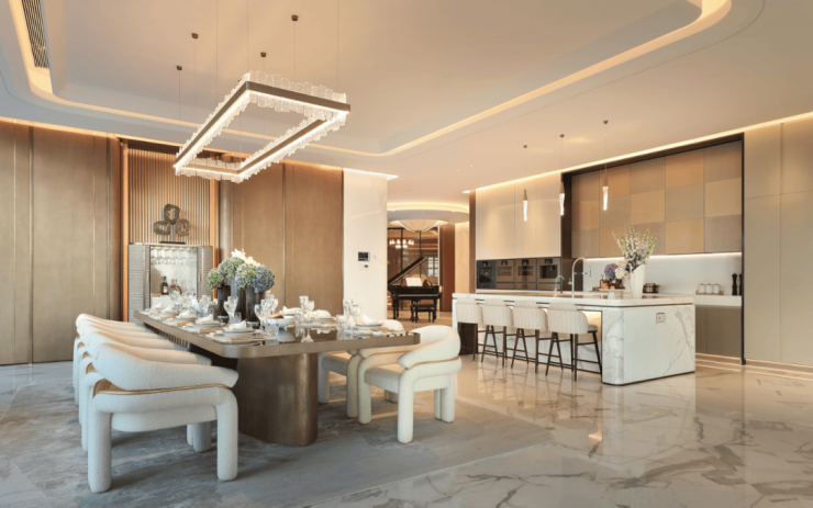 2025年,EIC成交金额22亿元,成为杭州大平层成交金额冠军。在此基础上,项目又迭代推出T2 建面540㎡赠720㎡的突破性产品,得房率230%,带泳池、影院、私宴、酒窖、健身、热带鱼缸、空中露台等功能,将别墅的功能搬至同一平面,具备极高的唯一性,堪称传奇与神话。