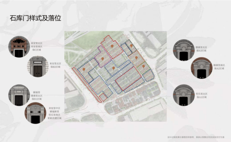 七坊、三十二弄、七大石库门串联起7大组团,八个不同规制的坊门,散落于组团之间,营造出了归家动线上的连续仪式