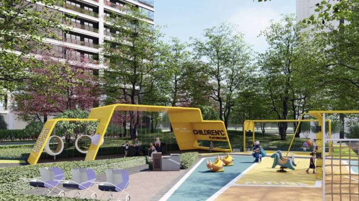 项目设计景观方案由深圳D+H设计机构操刀,从艺术、交互、肌理出发,结合常熟当地人文,据园区内景观架构,营造六大设计亮点。礼仪入园、童梦乐境、舒心康体、社区客厅、林下漫漫、绿地阶升的设计规划,使人们从归家开始,第一时间感受园区的美好。