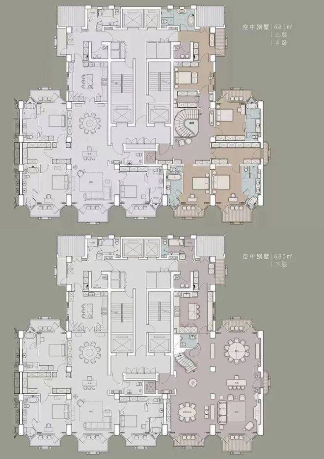 项目分三期开发,2号楼户型分布为一层4户,中间两套为375平米边套为680平米复式,总楼层39层,有两层为避难层,避难层会改造成绿化休闲区。