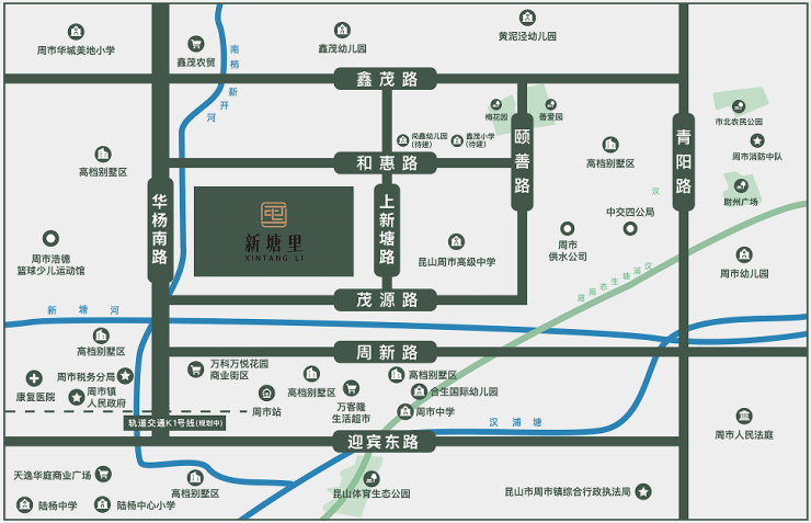新塘里楼盘位于周市镇上新塘路6号,由昆山北部新城集团与同进地产联袂打造,为缔造昆山北部高端人居而来。项目占地3.4万平方米,住宅总建面约3.95万平方米,容积率1.2,是近年来区域内少见超低密产品。项目地处北部新城核心板块,周边配套完善,生态资源丰富,占据江苏省十佳体育公园——昆山体育生态公园,是生态价值制高点。