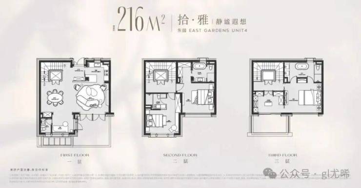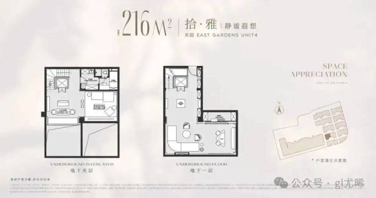 以建面216平户型为例,地面总高3层,地下一层5.5米带夹层,地下室面积就达到120m²,另外有露台、花园等,项目平均附赠也达到了约60%!