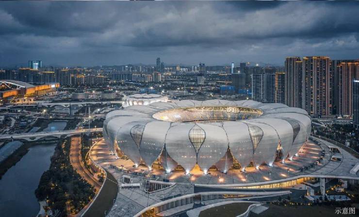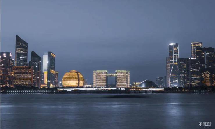 (直线距离约)6000米奥体:“日月同辉莲花碗,江河汇流亚运村”的城市中心格局。亚奥板块作为一江两岸核心区,自然成为观礼世界的超燃能级主场。树立杭州乃至长三角区域最有影响力、最具魅力、最具实力的高端文体中心。