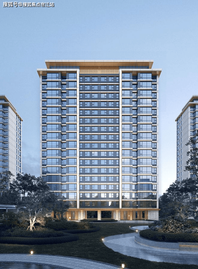 首层基座采用人造石材+铝板等装饰材料,增强建筑整体感和精致度;顶层外挑飘板使建筑立面更加清晰,层次感更丰富。