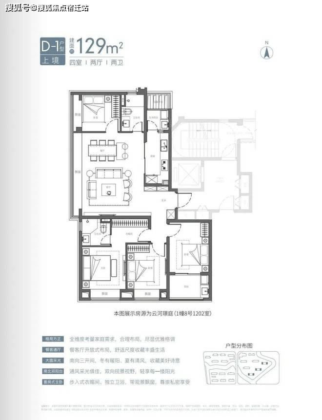 对于预算更加充裕的小伙伴,还有建面约129㎡的大四房可以选择,经典的三卧朝南、边套观景户型,改善必看!