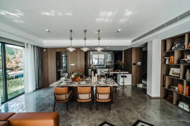 此次公开的这套下叠建面约272㎡精装样板间分三层,样板间结合项目的立面风格,整体为现代轻奢,为南北双入户,南侧可以从花园入户,北侧可以从地下停车场电梯上楼通过公共空间入户。