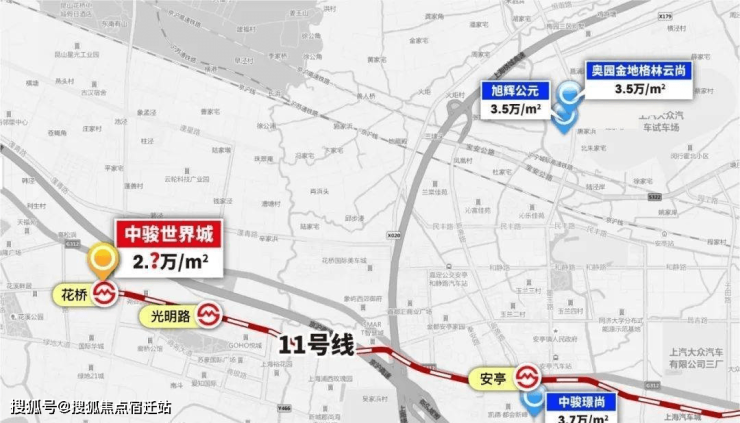 从地图上可以看到,花桥和上海嘉定一衣带水,住在中骏世界城和安亭几乎没有本质区别!而后者的新房即使离地铁较远,也要卖到3.5万/㎡,相比之下,限价背景下的花桥新房很可能只有2字头。