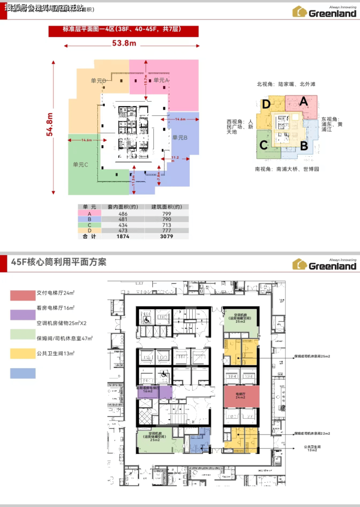 复合业态:约46万方超高层地标及高端企业总部办公楼,约17万方大型商业中心,约4.2万方星级酒店,约12万方高端住宅,约5万方公共绿化,同时坐拥董家渡天主堂和商船会馆2栋历史保护建筑、6个口袋公园(花桥空中花园/教堂花园/会馆花园/百草园/健康花园/中央花园)、滨江文化休闲空间等文化功能配套。