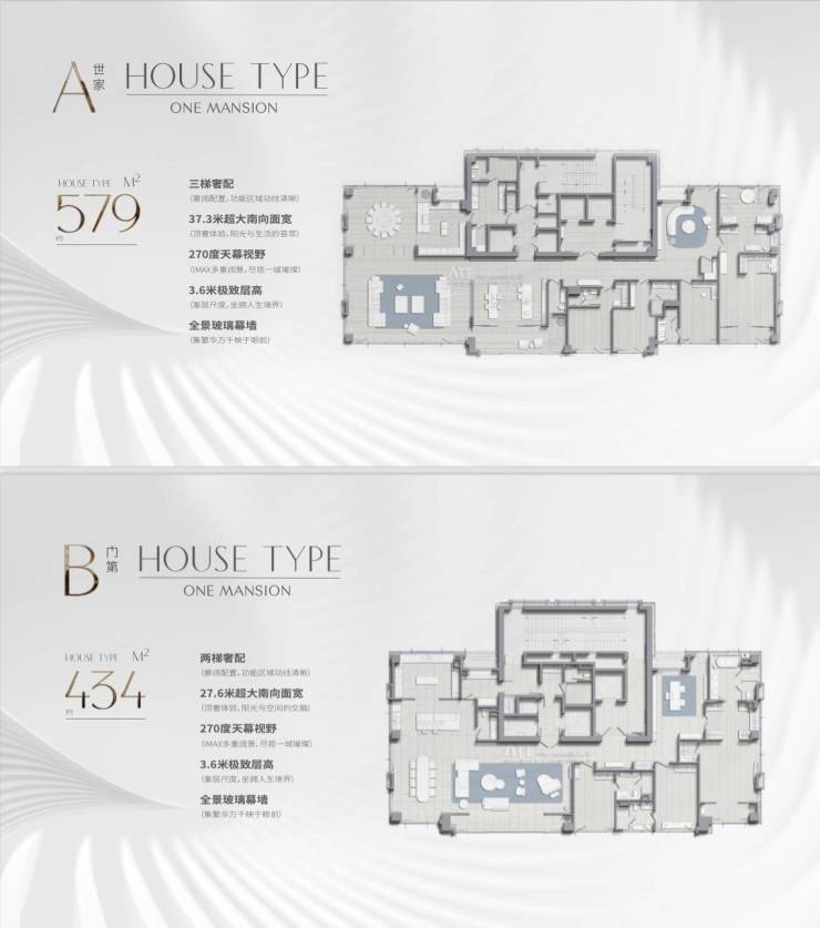 1号楼579平一层三梯奢阔空间;2号楼434平一层两梯奢阔空间,共计35席。
