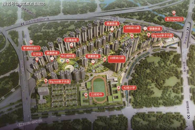 品秀星图很大,横跨了13号线官湖站和新沙站,小区东西两个主入口,到官湖和新沙站的距离分别为450米和650米,步行时间在5到10分钟间。