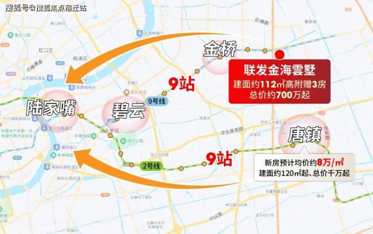 张江辐射的唐镇、前滩辐射但无地铁的三林而言,金桥东的交通能级就太强劲了;通过9号线,2站金桥核心、9站陆家嘴。要知道8万+唐镇到陆家嘴同样是9站,但房价差了近200万+!